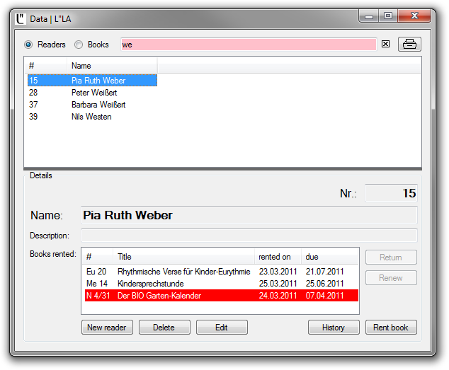LiLA ist mehrsprachig, die Screenshots sind jedoch nur in englischer Sprache verfügbar. Sreenshots: Übersicht DatenhaltungSchüler 1 Schüler 2 Bücher 1 Bücher 2 Online-Daten